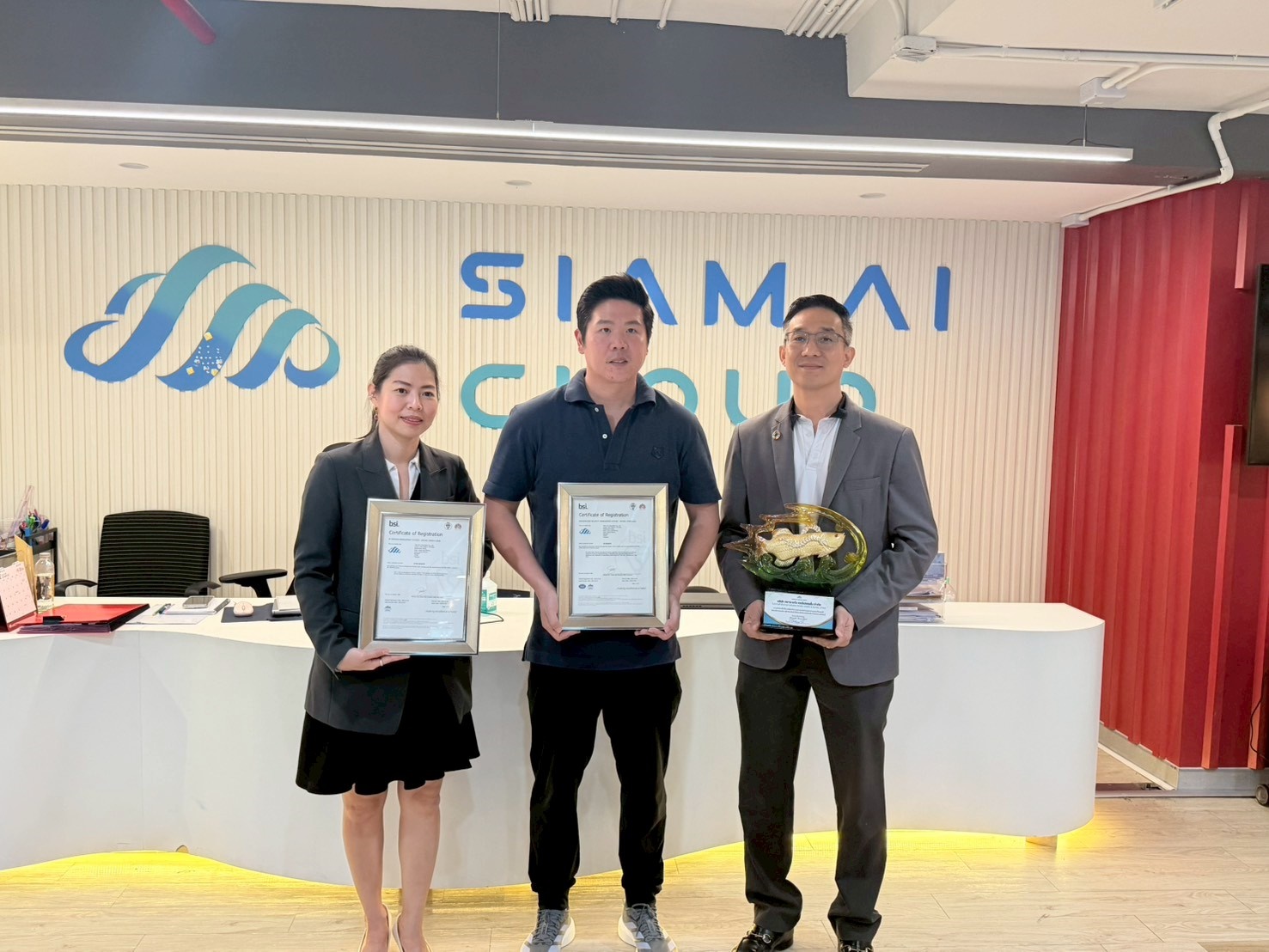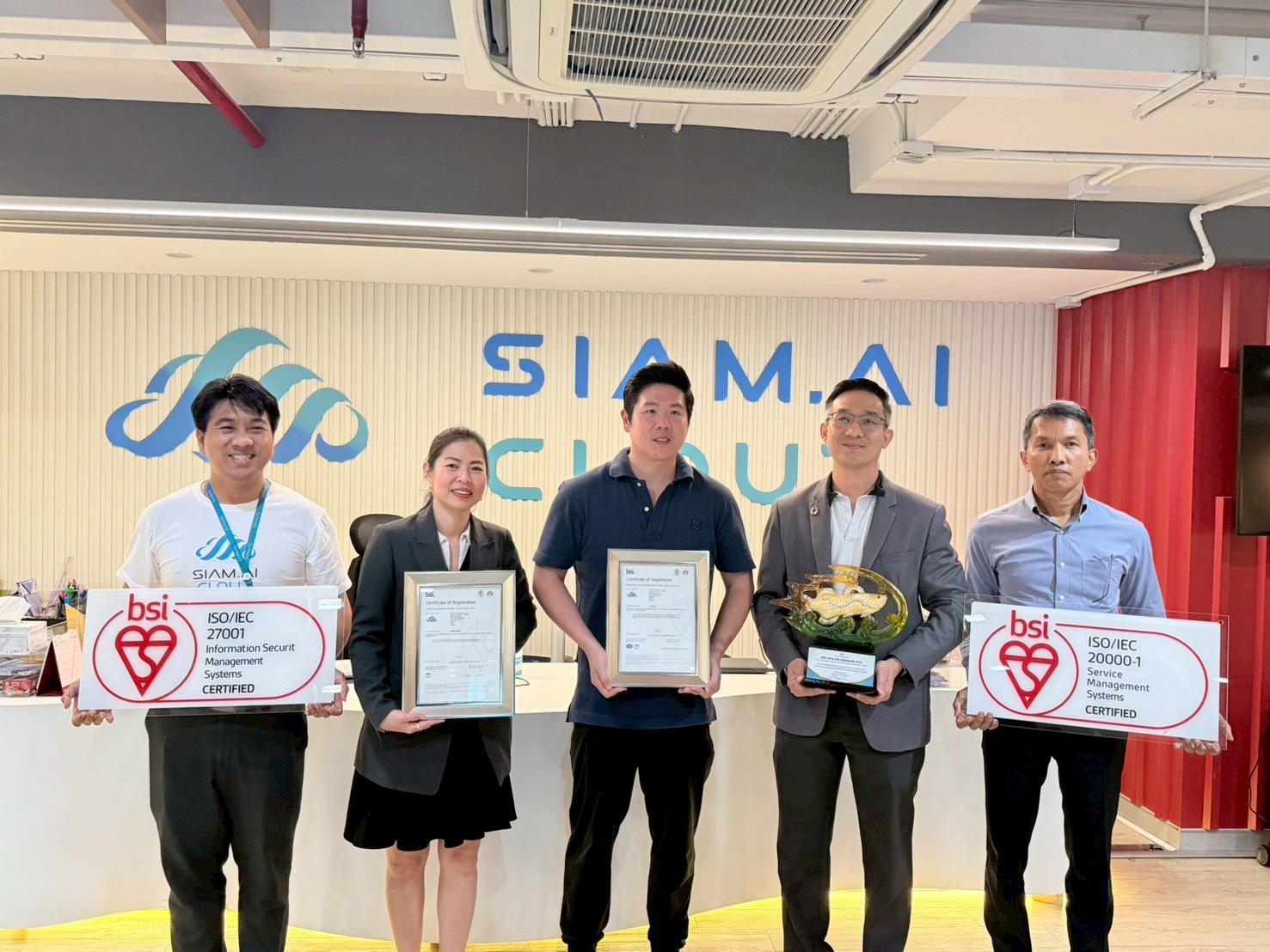 āļ‚āļ­āļĢāđˆāļ§āļĄāđāļŠāļ”āļ‡āļ„āļ§āļēāļĄāļĒāļīāļ™āļ”āļĩāļāļąāļš āļšāļĢāļīāļĐāļąāļ— āļŠāļĒāļēāļĄ āđ€āļ­āđ„āļ­ āļ„āļ­āļĢāđŒāđ€āļ›āļ­āđ€āļĢāļŠāļąāđˆāļ™ āļˆāļģāļāļąāļ” āļ—āļĩāđˆāļ›āļĢāļ°āļŠāļšāļ„āļ§āļēāļĄāļŠāļģāđ€āļĢāđ‡āļˆāđƒāļ™āļāļēāļĢāļĒāļāļĢāļ°āļ”āļąāļšāļĄāļēāļ•āļĢāļāļēāļ™āļ­āļ‡āļ„āđŒāļāļĢāļ”āđ‰āļ§āļĒāļāļēāļĢāđ„āļ”āđ‰āļĢāļąāļšāļāļēāļĢāļĢāļąāļšāļĢāļ­āļ‡āļĢāļ°āļšāļš ISO/IEC 20000 (IT Service Management) āđāļĨāļ° ISO/IEC 27001 (Information Security Management)